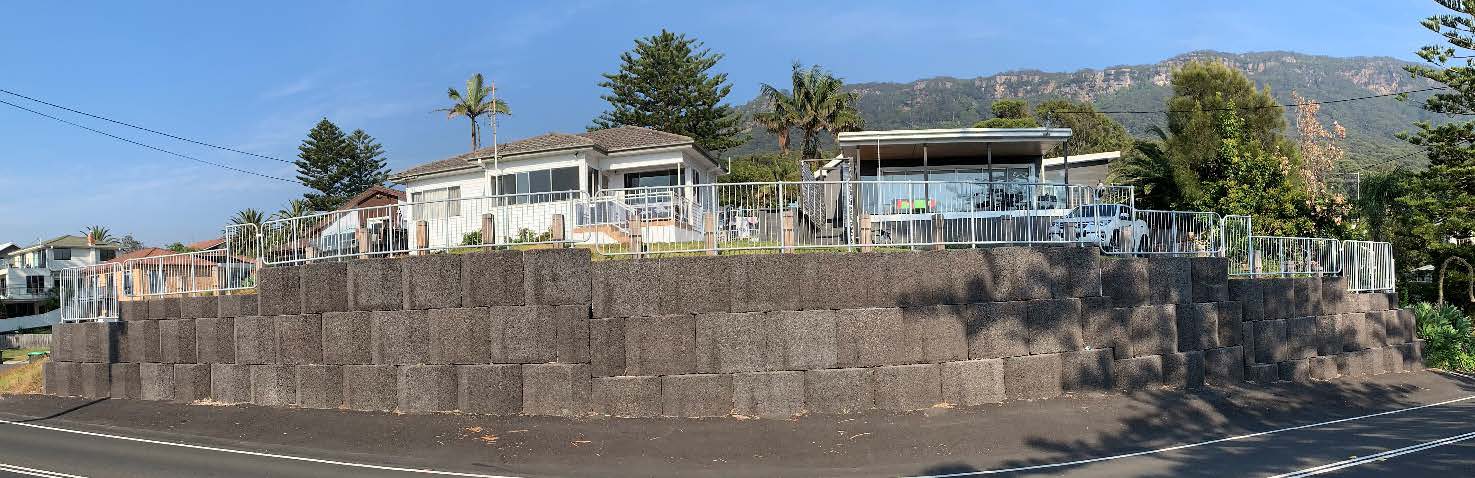 The site is located at Lawrence Hargrave Drive, Austinmer. The slope was in an excessive 70 degrees and there was no drain capacity overall, the headscarp was severely unstable and appearing failure under loading or foot traffic.